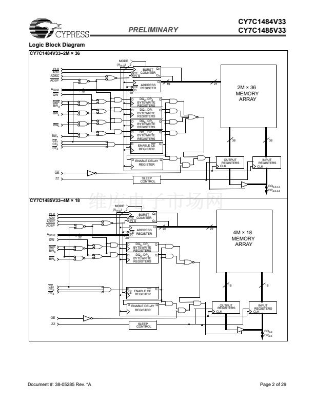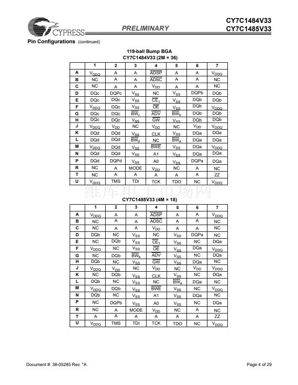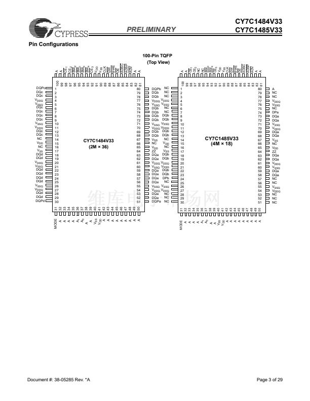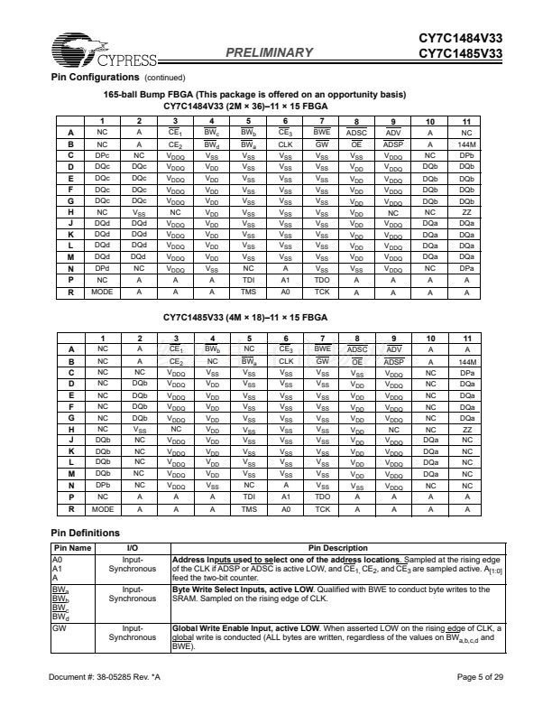 packages (CY7C1484V33 and CY7C1485V33).
