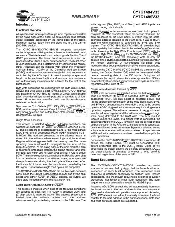 The Cypress Synchronous Burst SRAM family employs