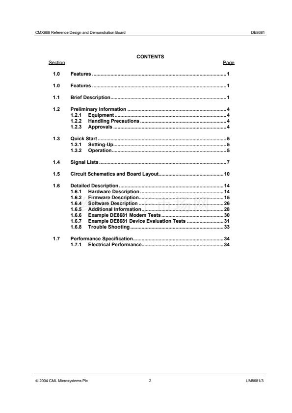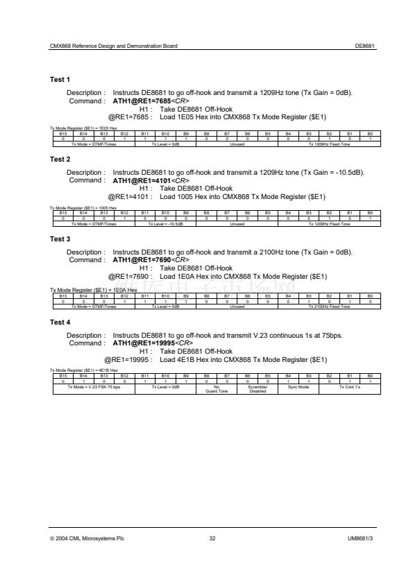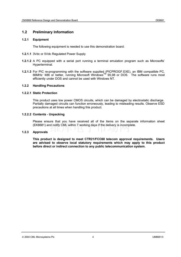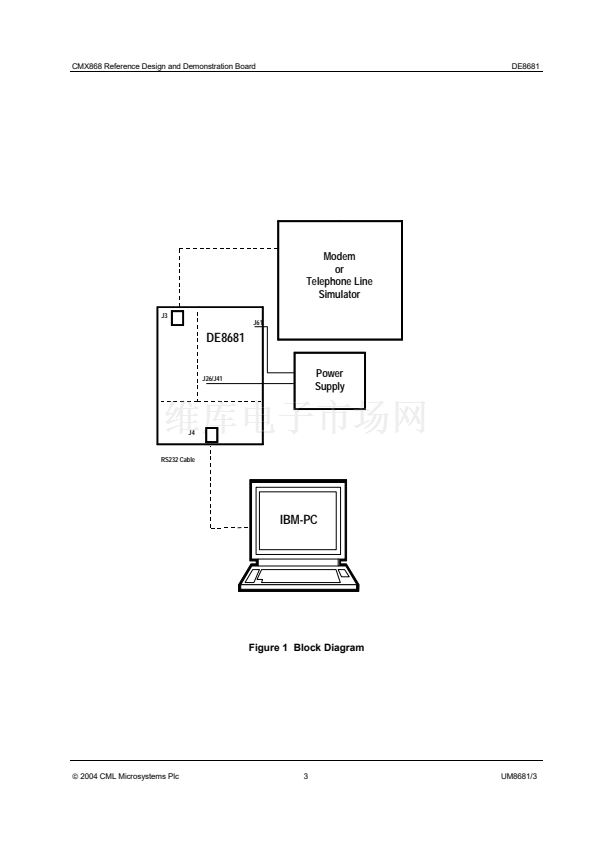 The DE8681 Demonstration Board is a reference design for the CMX868 V.22 bis modem IC. On the