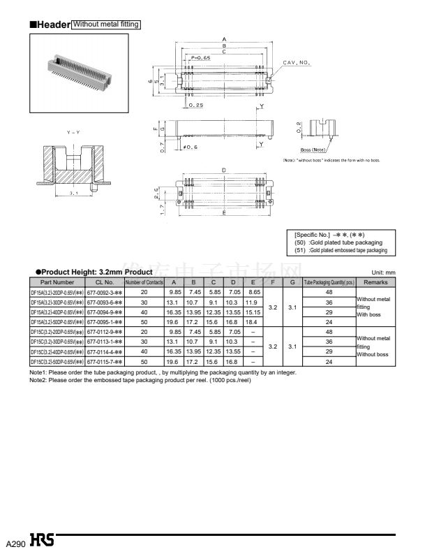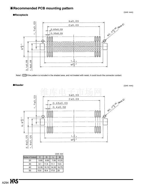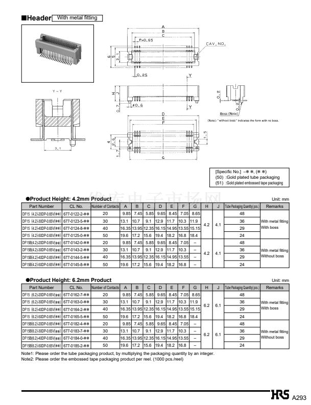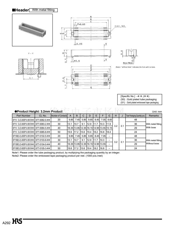Note1: The stacking height is determined by adding the header and receptacle to the figures followed by the product name