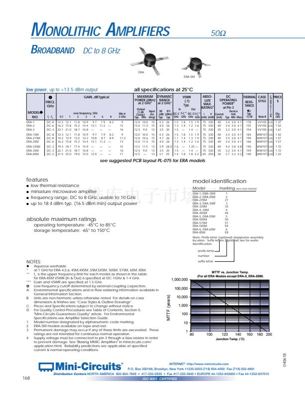 for ERA-8SM VSWR (In & Out) is specified at DC-1GHz & 1-4 GHz.