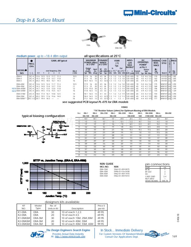 at 1 GHz for ERA-4,5,6, 4SM,4XSM ,5SM,5XSM, 50SM, 51SM, 6SM, 8SM.