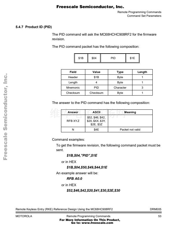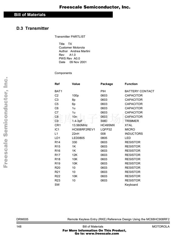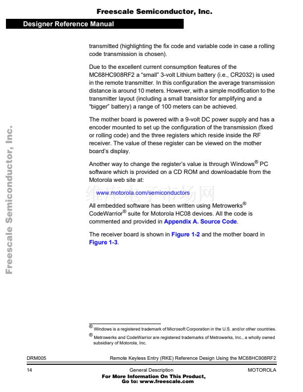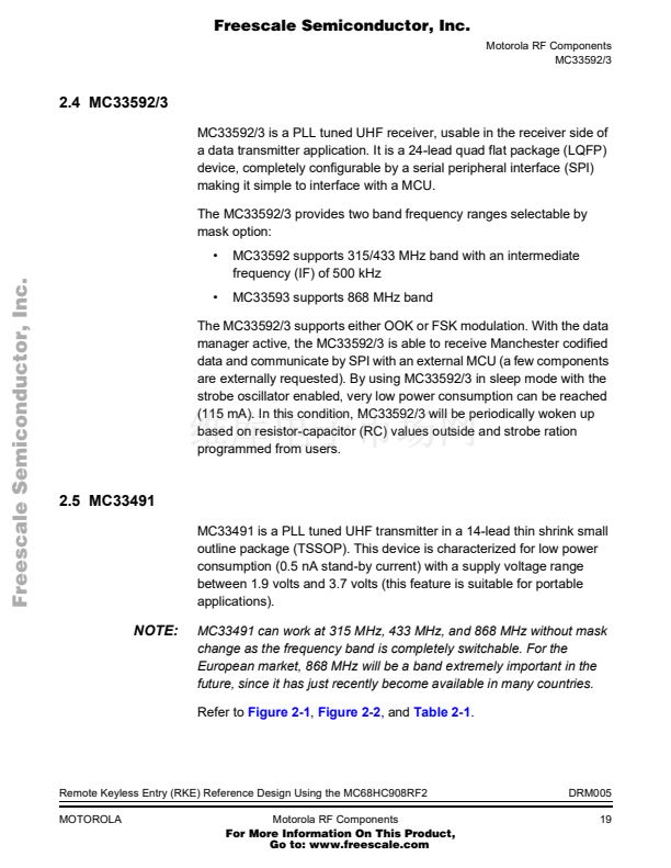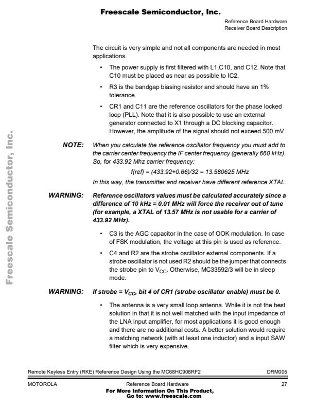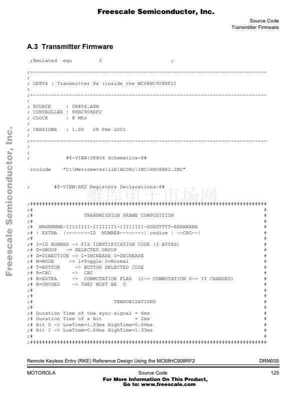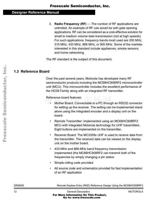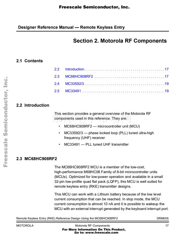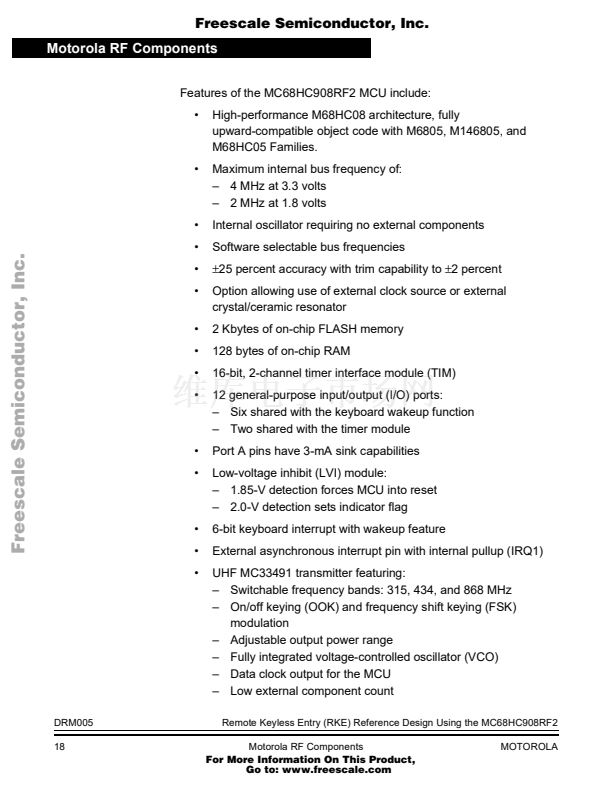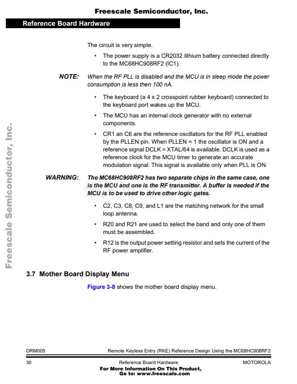 Remote Keyless Entry (RKE) Reference Design Using the MC68HC...