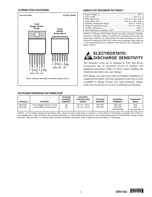 The DRV102 is available in 7-lead staggered TO-220