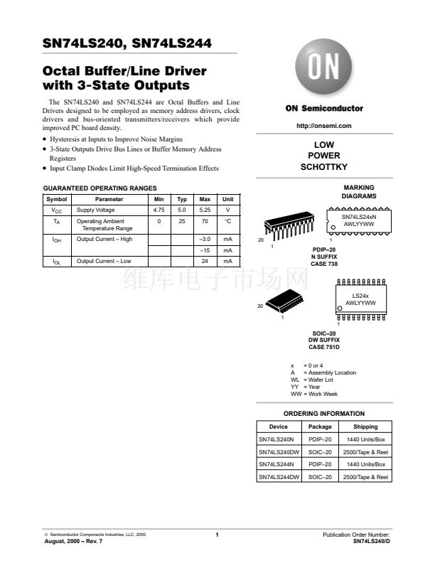 The SN74LS240 and SN74LS244 are Octal Buffers and Line
