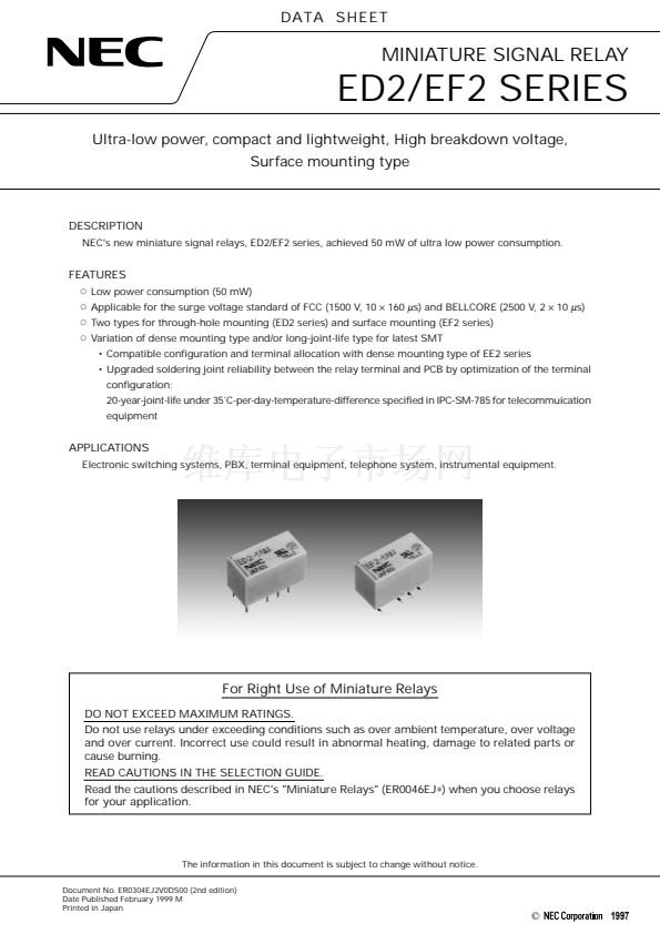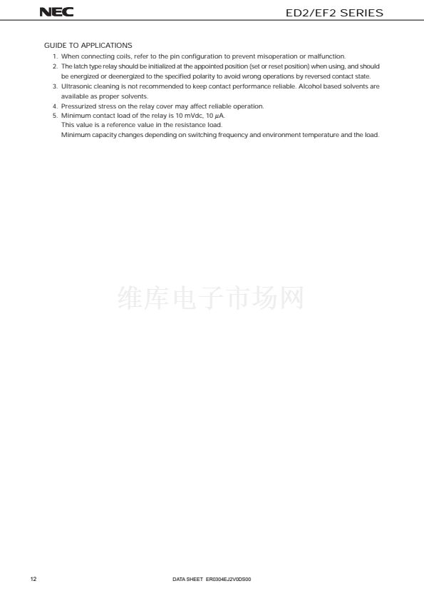 Read the cautions described in NEC's "Miniature Relays" (ER0046EJ鈭? when you choose relays