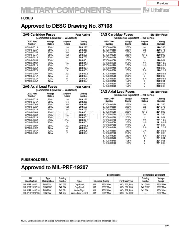 • MILITARY COMPONENTS FUSES