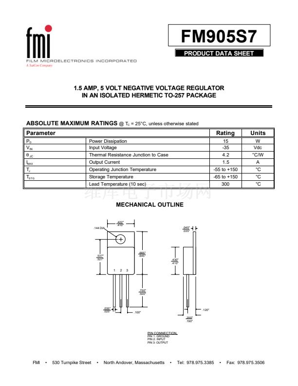 1.5 AMP, 5 VOLT NEGATIVE VOLTAGE REGULATOR