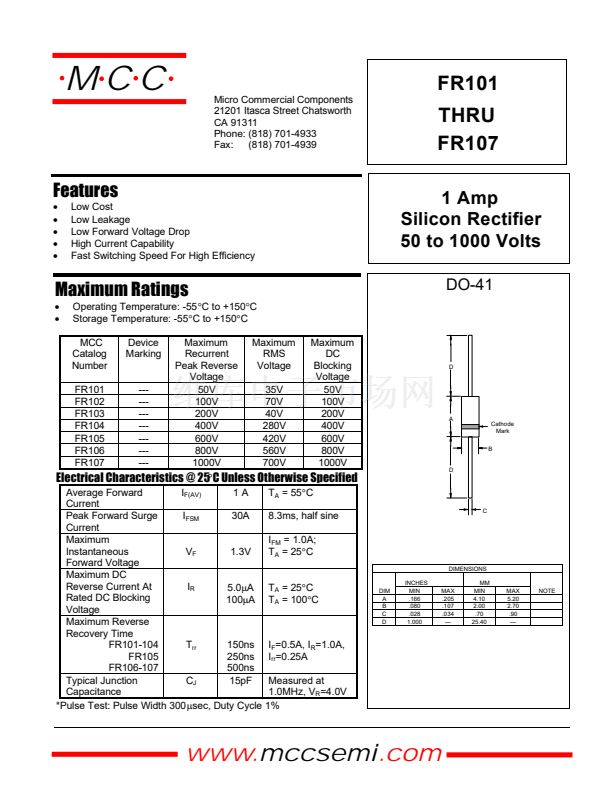 FAST RECOVERY RECTIFIER(VOLTAGE RANGE 50 to 1000 Volts CURRE...