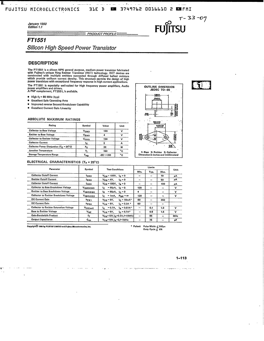 TRANSISTOR | BJT | NPN | 120V V(BR)CEO | 2A I(C) | TO-66