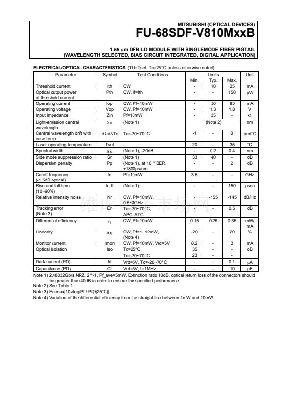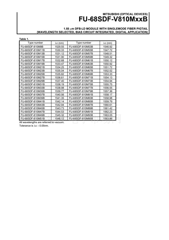 • 1.55 um DFB-LD MODULE WITH SINGLEMODE FIBER PIGTAIL (WAVELEN...