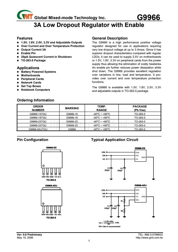 The G9966 is available with 1.5V, 1.8V, 2.5V, 3.3V