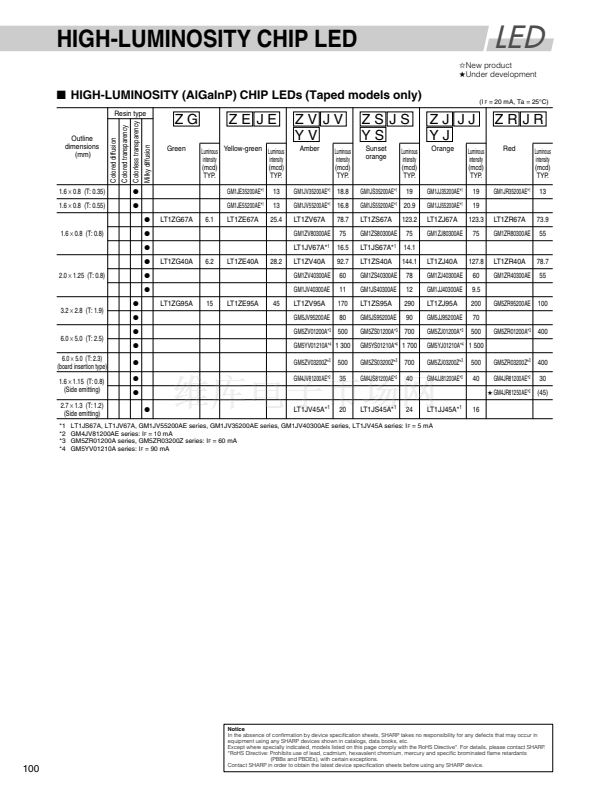 2.0X4.5mm, Rectangle Type, Colored Diffusion LED Lamps for I...