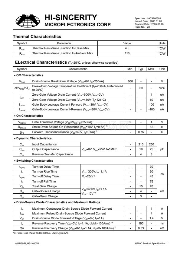 Spec. No. : MOS200501