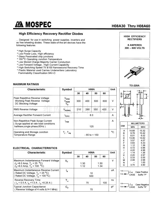• HIGH EFFICIENCY RECTIFIERS(8A,300-600V)