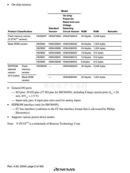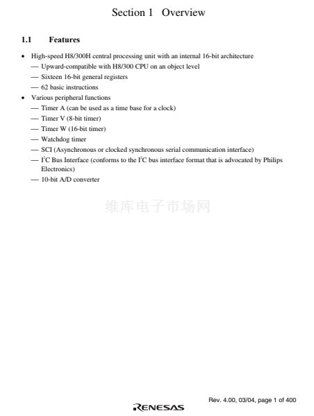 16-Bit Single-Chip Microcomputer H8 Family/H8/300H Tiny Seri...