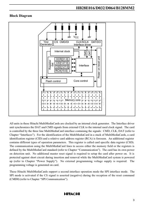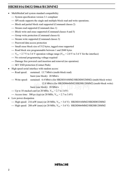 These Hitachi MultiMediaCard鈩, HB28E016MM2, HB28D032MM2, HB28D064MM2 and