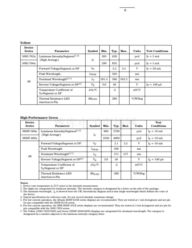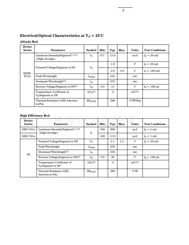 1. These displays are recommended for high ambient light operation. Please refer to the HDSP-E10X AlGaAs and HDSP-335X HER data