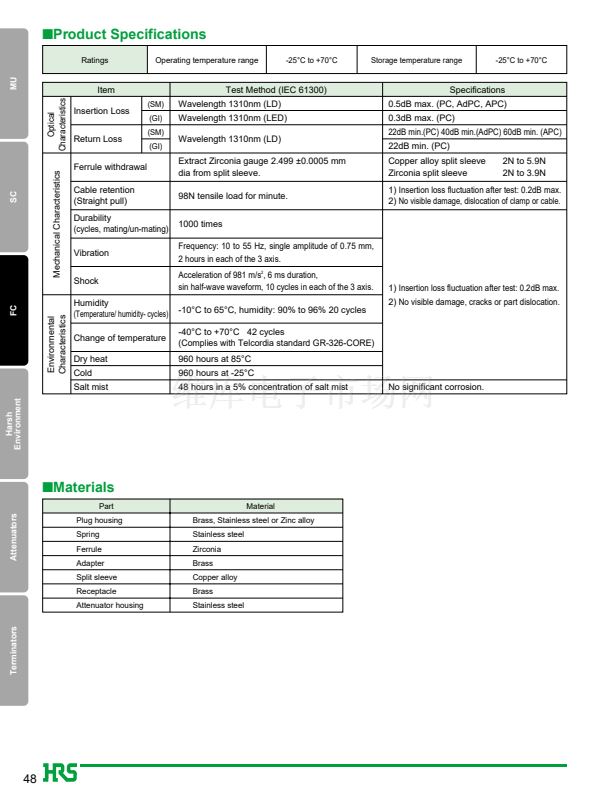 1. JIS, IEC standards compliantand and fully intermateable with NTT's FC products.