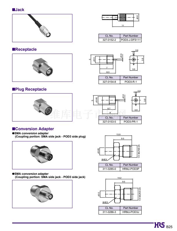 (Coupling portion: SMA side jack - POD3 side plug)