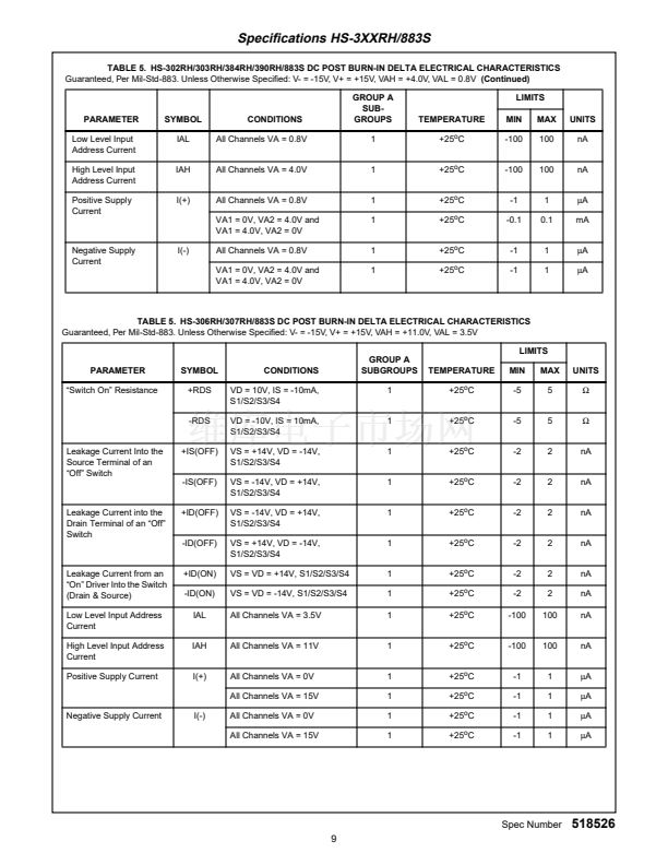 HS9-306RH/883S ( Note 1)
