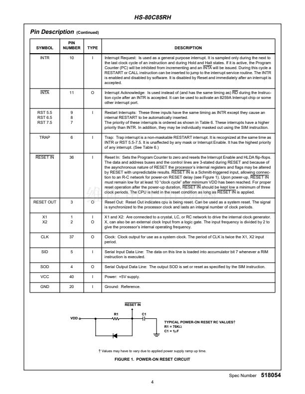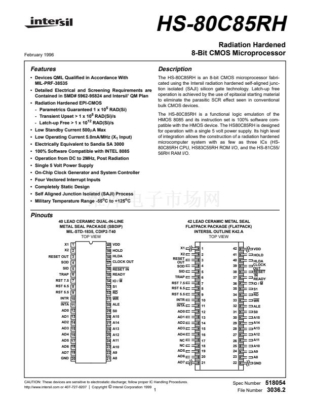 The HS-80C85RH is an 8-bit CMOS microprocessor fabri-
