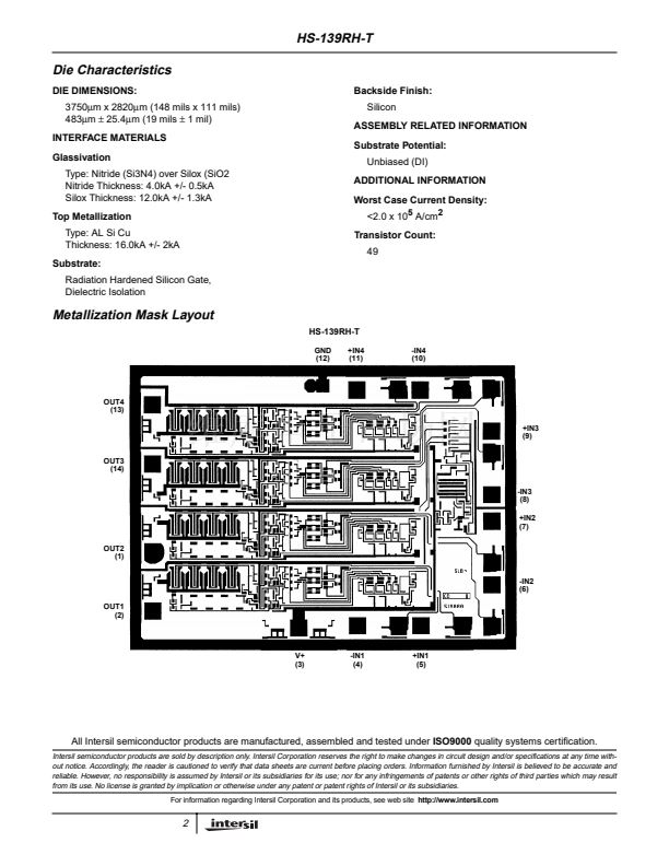 The HS-139RH-T is fabricated on our dielectrically isolated