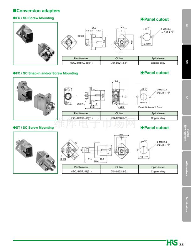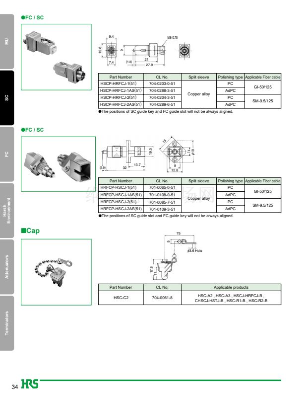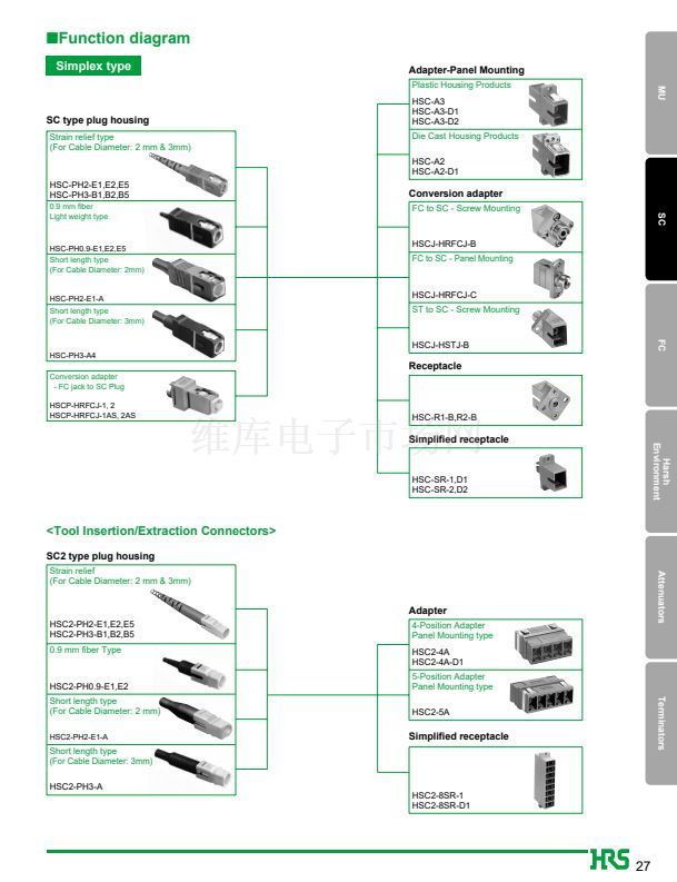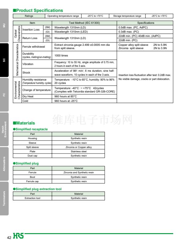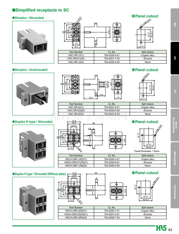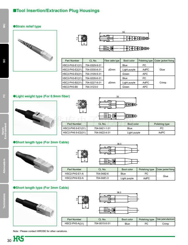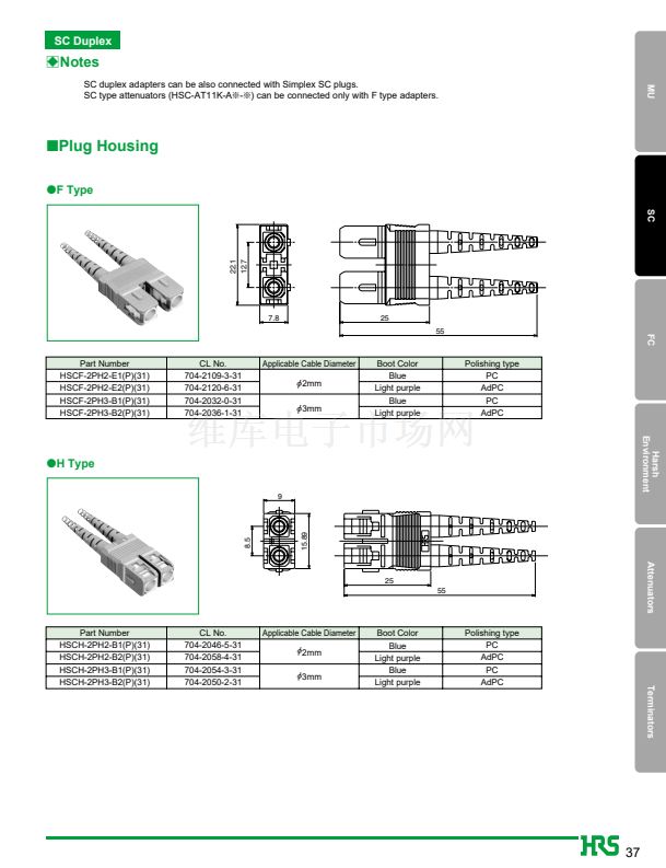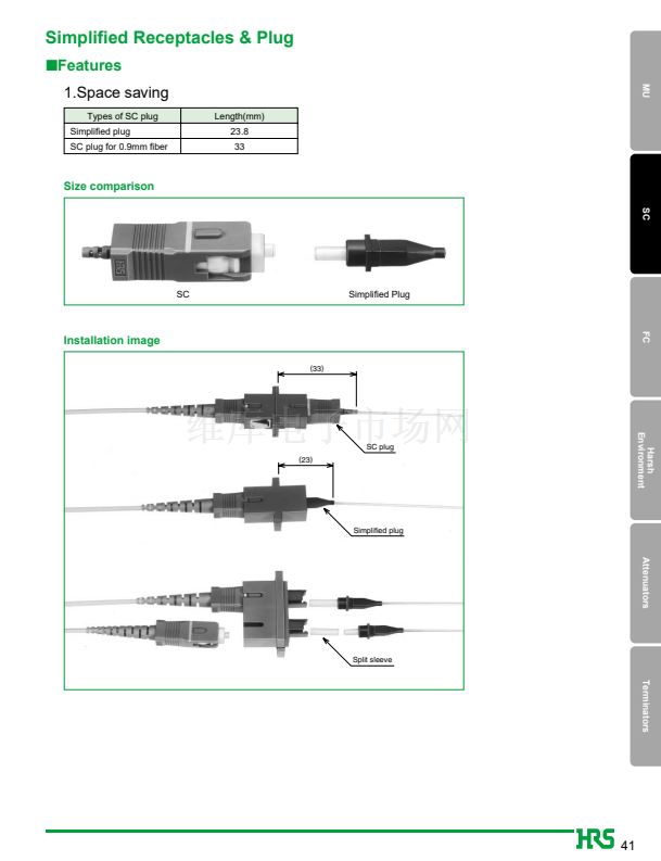 1. JIS, IEC standards compliant and fully intermateable with NTT's SC products.