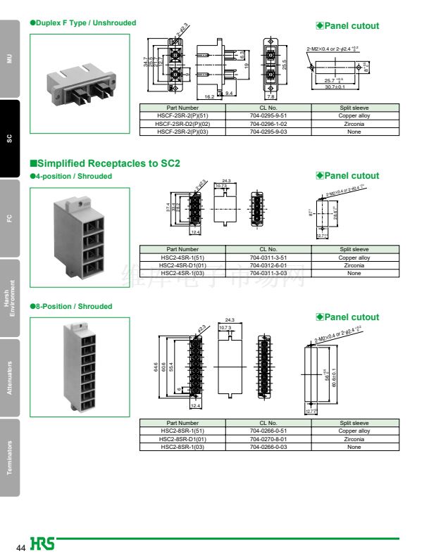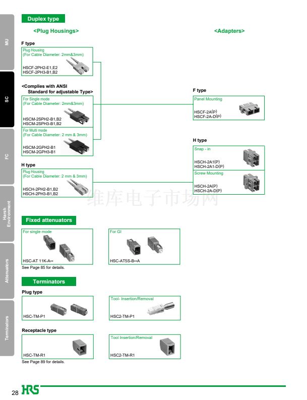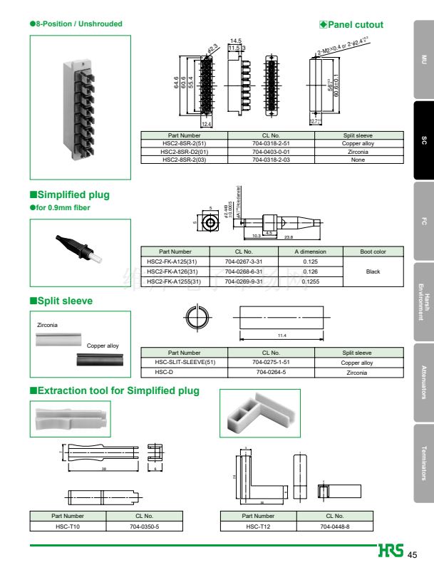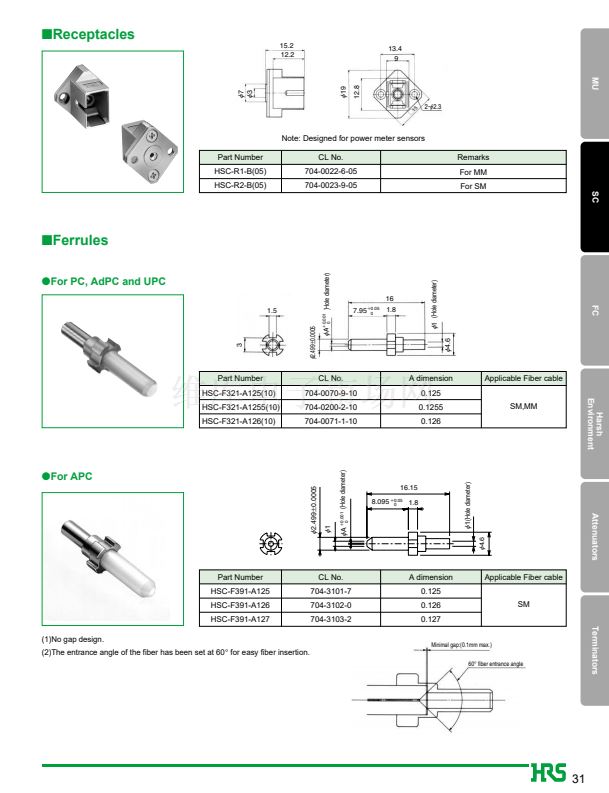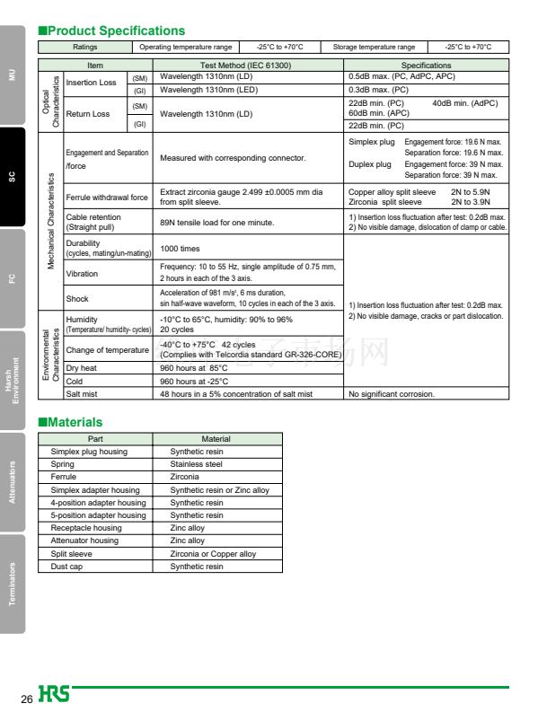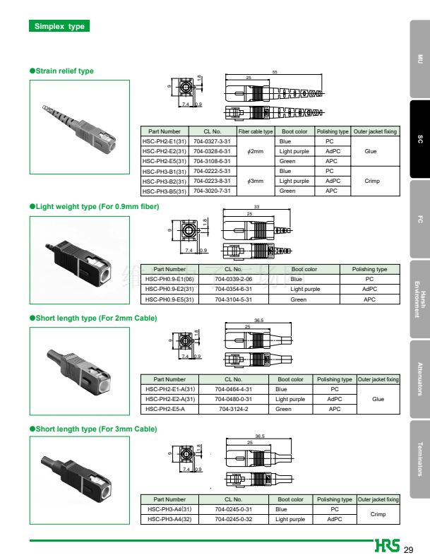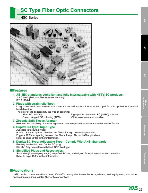 1. JIS, IEC standards compliant and fully intermateable with NTT's SC products.
