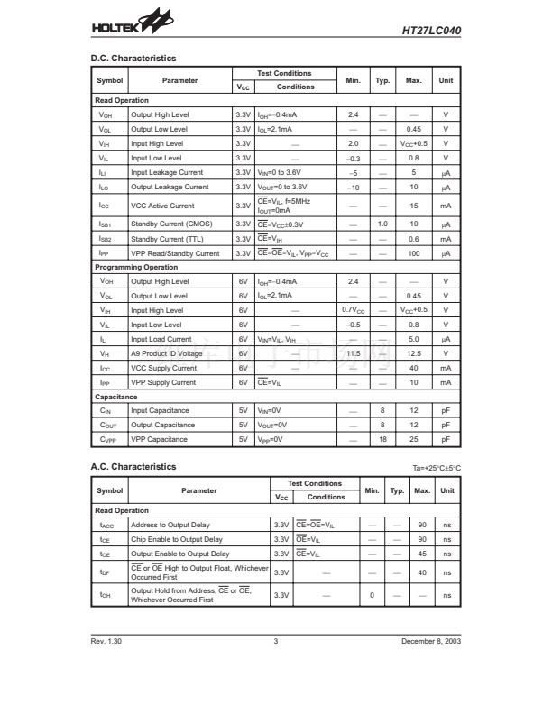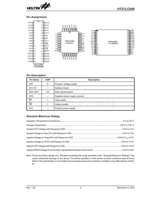 The HT27LC040 chip family is a low-power, 4096K