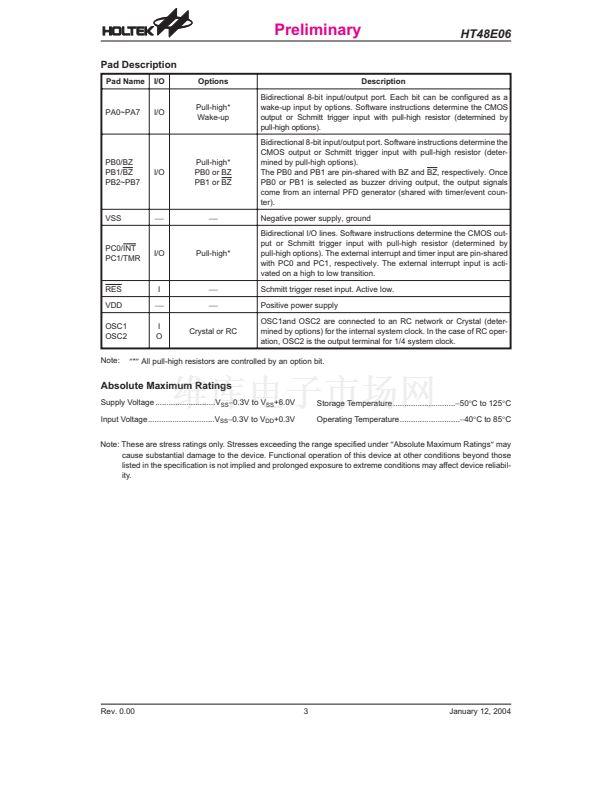 The HT48E06 is an 8-bit high performance, RISC archi-