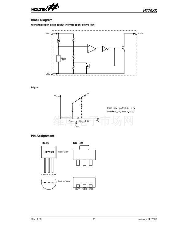 For example: The HT7070A is a 7.0V, NMOS open drain active low output