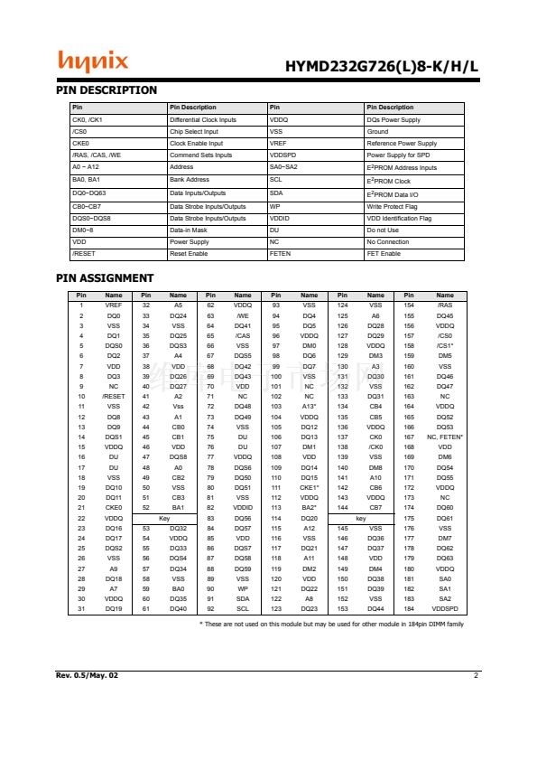 Hynix HYMD232G726(L)8-K/H/L series is registered 184-pin double data rate Synchronous DRAM Dual In-Line Memory