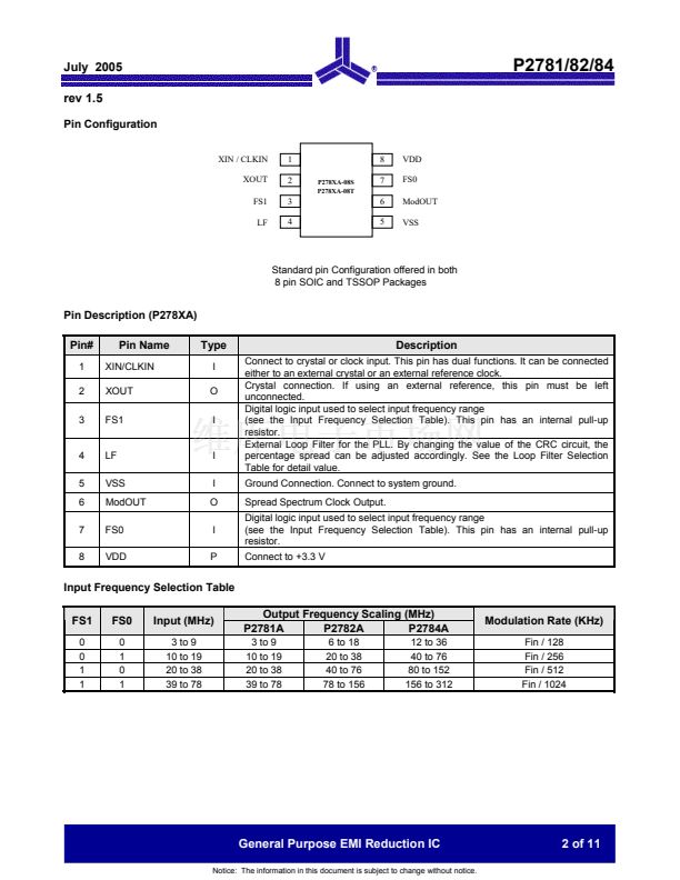 P278XA is available in 8 pin SOIC and TSSOP
