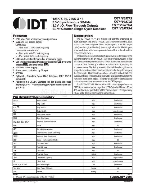 IDT71V3577YSA75BQG相關(guān)型號PDF文件下載