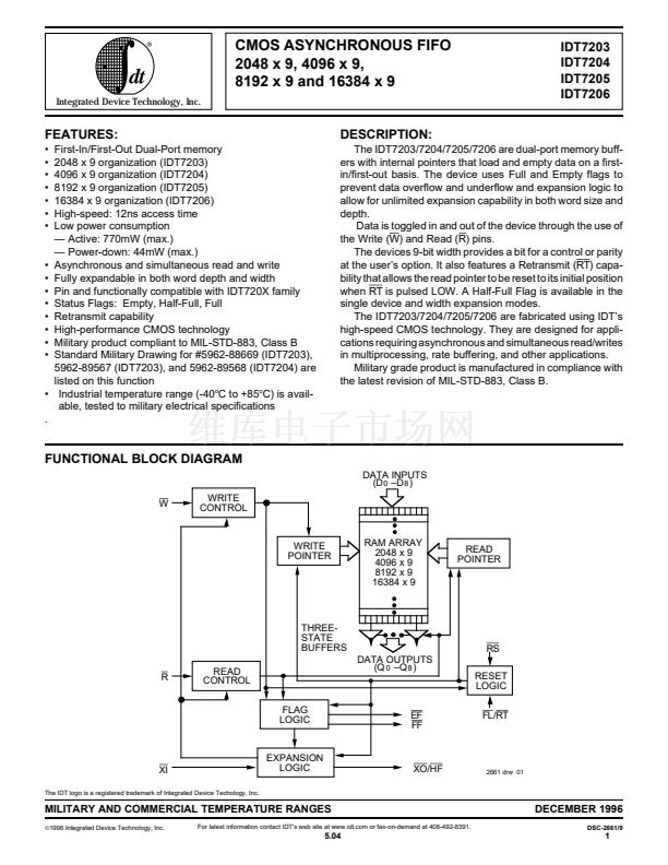 The IDT7203/7204/7205/7206 are fabricated using IDT鈥檚