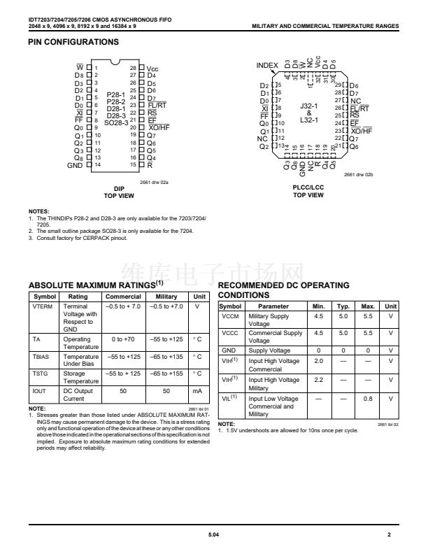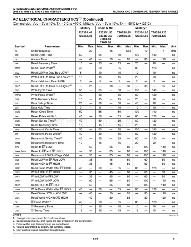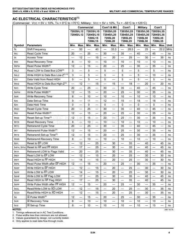 5962-89567 (IDT7203), and 5962-89568 (IDT7204) are