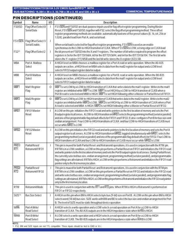 IDT72V3694 鈥?32,768 x 36 x 2