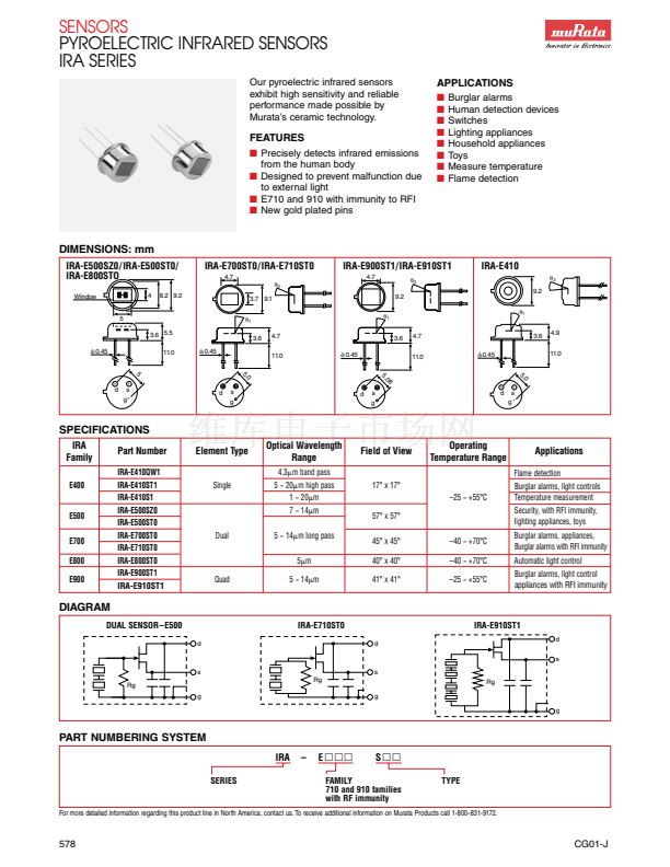 • PYROELECTRIC INFRARED SENSORS IRA SERIES