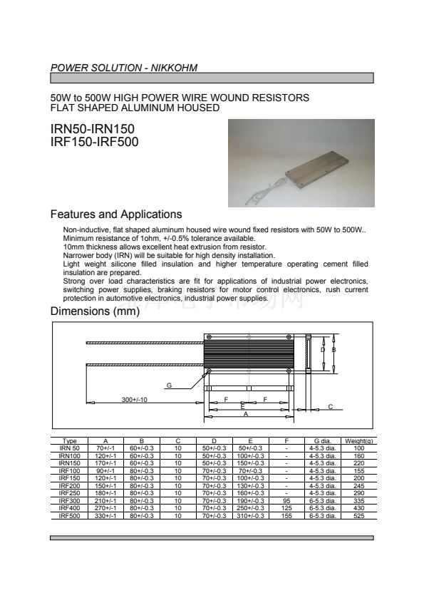 Non-inductive, flat shaped aluminum housed wire wound fixed resistors with 50W to 500W..
