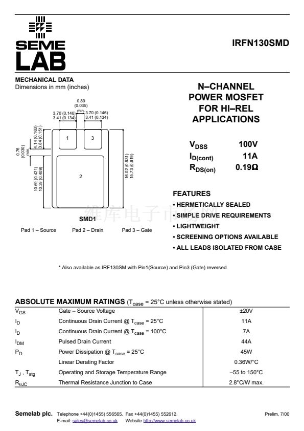 * Also available as IRF130SM with Pin1(Source) and Pin3 (Gate) reversed.