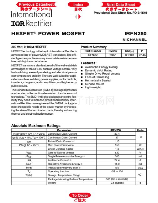 IRFN250相關(guān)型號(hào)PDF文件下載