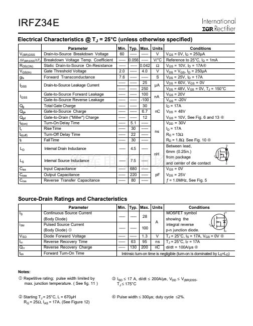 IRFZ34E相關(guān)型號PDF文件下載