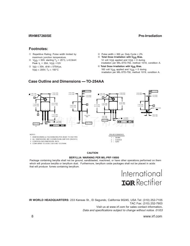 IRHM57260SE 100K Rads (Si)