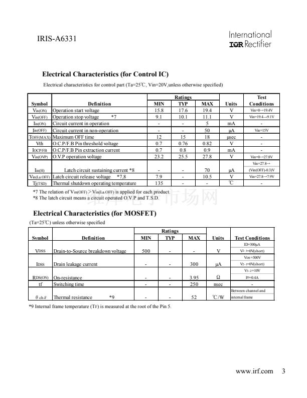 IRIS-A6331 is a hybrid IC consists from power MOSFET and a controller IC, designed for PRC fly-back converter type