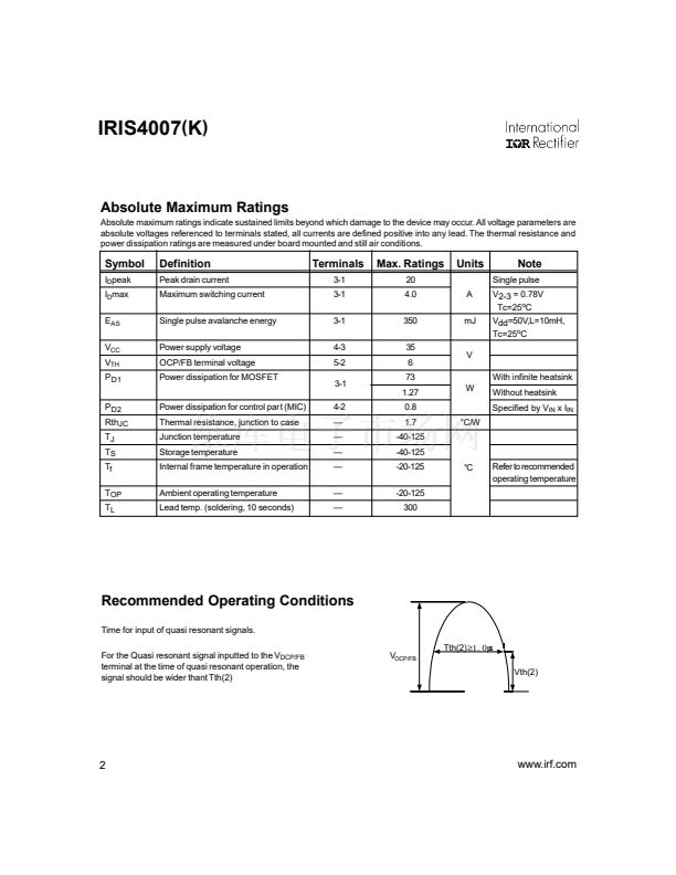 The IRIS4007(K) are designed for use in AC/DC and DC/DC switching power supplies upto 100VDC nominal