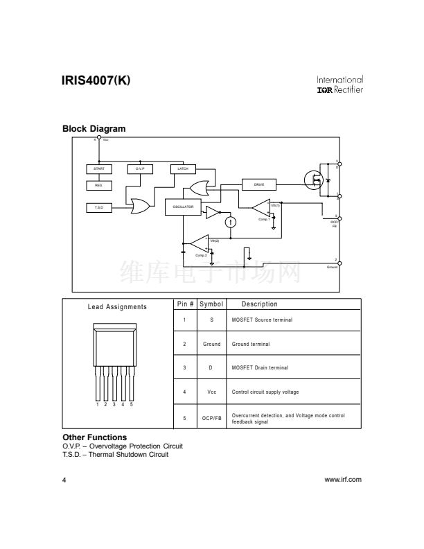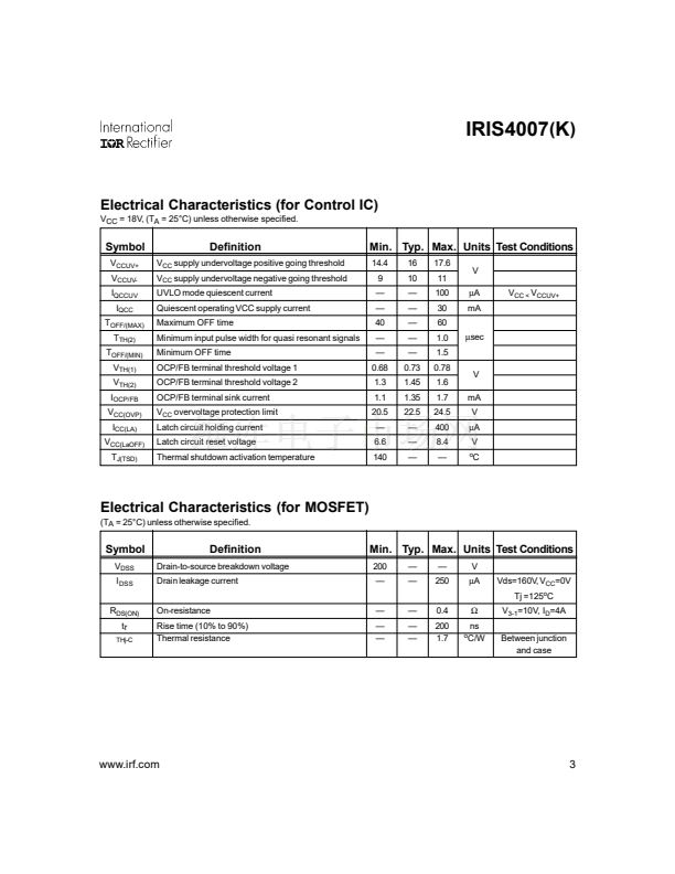 The IRIS4007(K) is a dual mode voltage and current controller combined with a MOSFET in a single Package.