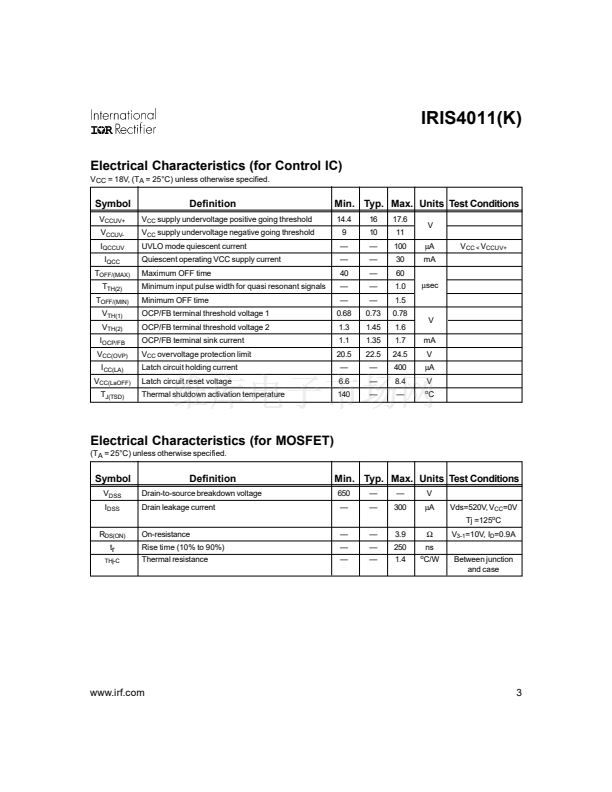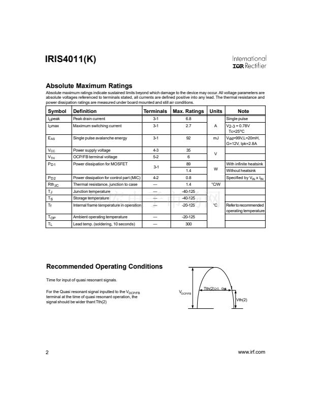 The IRIS4011(K) is designed for use in universal and single input AC/DC and DC/DC switching power supplies