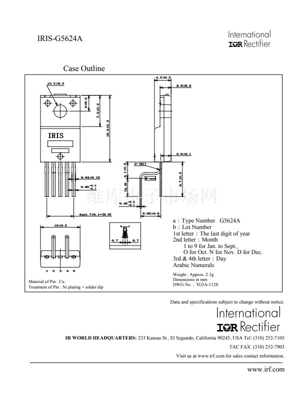IRIS-G5624A is a hybrid IC consists from power MOSFET and a controller IC, designed for Indirect feed-back Quasi-