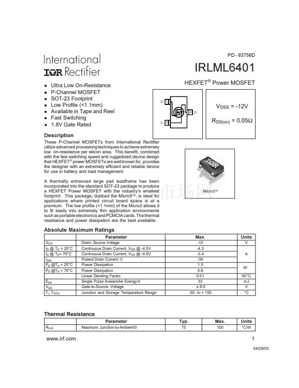 a HEXFET Power MOSFET with the industry's smallest